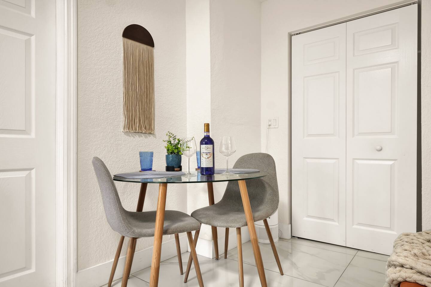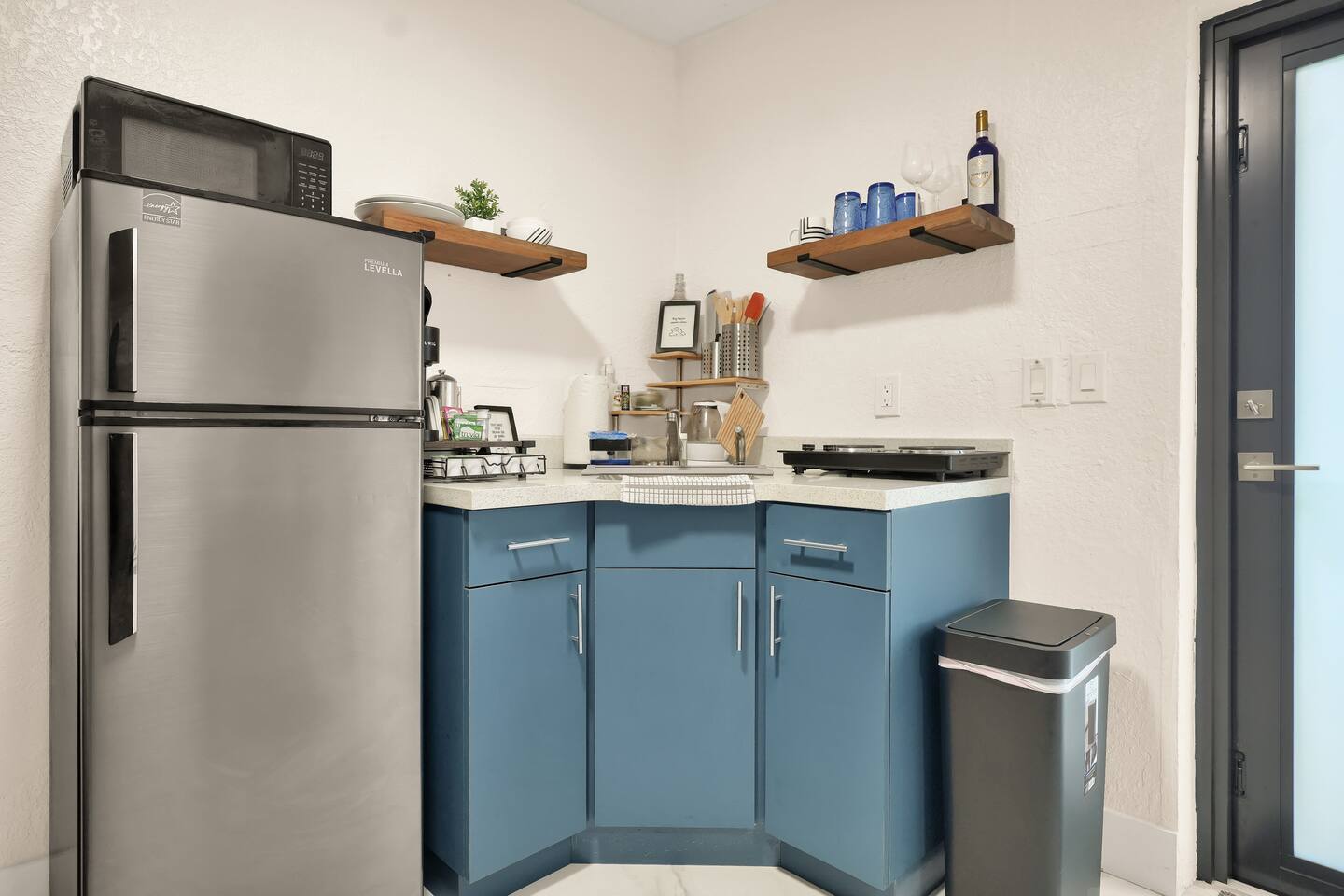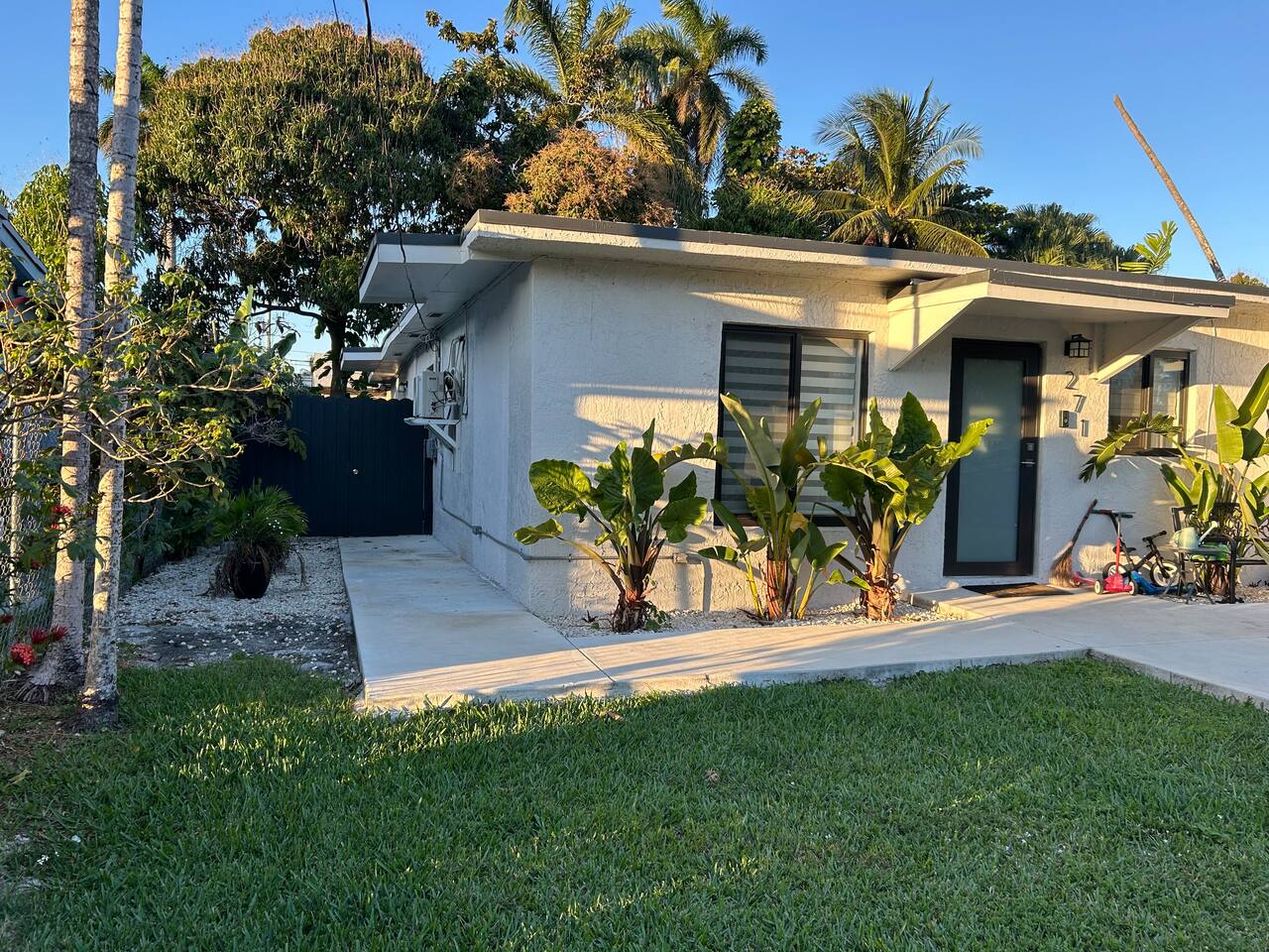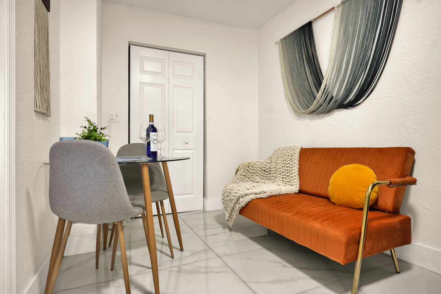 Restful and private guest suite with a separate kitchenette, a cozy dining and living area, and a fully fenced-in patio. A free designated parking spot is also included for your convenience. The space is thoughtfully stocked with everything you need for a comfortable and enjoyable stay. Perfect for solo travelers, couples, close friends, food lovers, and adventurers. The suite accommodates up to two guests. Well-behaved and trained pets are welcome, because we know they're part of the experience too. SHORT DRIVES (w/o traffic) ★ 3 mins.* away from neighborhood food hall and roof top, The Citadel ★ 10 mins.* away from Miami Design District or Wynwood ★ 15 mins.* away from North Beach, downtown, or the hospital district ★ 15-25 mins.* away from South Beach, Brickell, Miami International Airport or Hard Rock Stadium DESIGN Intentionally designed with a color palette to evoke a harmonious blend of warmth & tranquility. WHERE YOU’LL SLEEP Queen-sized bed with cloud-like features, soft linen and cozy fleece blankets for extra comfort. Ultra soft foam earplugs and a sunrise alarm clock with wake-up light, 7 nature sounds and 8 color night lights are available bedside. AMENITIES We provide kitchen essentials along with beverages and toiletries as complimentary starters. PRIVATE YARD Private yard oasis with personal charcoal grill, table and chairs. ENTRY Lock box with code provided the morning of your arrival day for a seamless check-in. FREE PARKING One (1) free designated parking spot in front of the residence premises. BEACH ESSENTIALS (1) beach bag, (2) beach towels, (1) umbrella, (1) chair), (1) mini handy cooler MID-TERM STAYS 28+ days are welcomed. A weekly change of freshly laundered linen and towels is provided and bi-weekly cleaning is offered at no extra charge. A lease agreement is required. CHILDREN 0-2 A travel crib/play yard, toddler books, toys, BabyBjorn bouncer and dinnerware are all available upon request. Your stay at Suite Azul is designed to be enjoyable, and effortlessly comfortable, leaving you to focus on exploring the vibrant Miami neighborhoods, working just minutes away or enjoying laidback remote work.