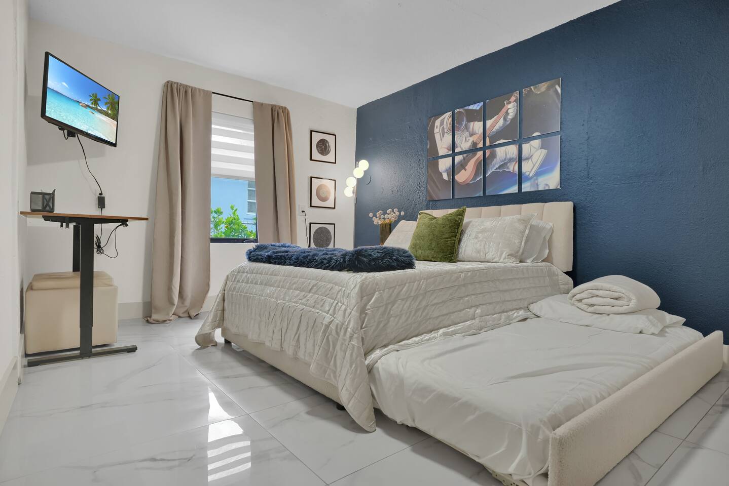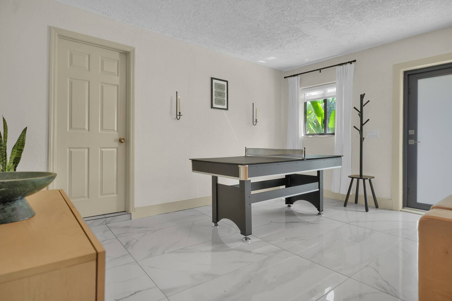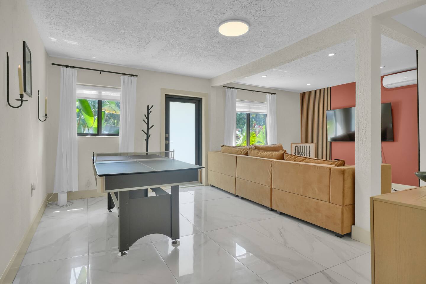 Perfect for couples, families, small friend groups, and travelers alike, Zen House comfortably accommodates up to six guests seeking a wholesome place to rest and lodge. LOCATION Centrally located without the chaos 📍3 mins → The Citadel (local food hall & rooftop) 📍10 mins → Miami Design District & Wynwood 📍15 mins → North Beach, Downtown, or the Health District 📍15–25 mins → South Beach, Brickell, MIA Airport & Hard Rock Stadium DESIGN Intentionally curated with earthy tones and modern boho touches, the home’s design evokes warmth, calm, and connection, a true retreat for mindful travelers. ACCOMODATIONS • 2 Bedrooms • 3 Beds (King • Full • Twin) + Oversized Sofa • 2 Bathrooms PARKING • Gated space for 1 car at no additional cost CONVENIENCE • Fully stocked kitchen with coffee, creamer, sugar, all-purpose seasoning, salt & pepper, organic olive oil & vinegar • High-speed Wi-Fi & Smart TVs • Washer/dryer + starter pods • Complimentary essentials: beverages, shampoo, conditioner, shower gel, hairdryer, and more AMENITIES • 2-in-1 pool + ping pong table • Board & card games • Saucer swing • Cornhole • Earplugs • Full-length mirrors • Foot massage machine • Fresh linens and body, hand, wash towels • Private yoga sessions and/or in-house massages can be arranged - feel free to ask to learn more! MID-TERM STAYS • 28+ day stays welcome • Bi-weekly cleaning included (no extra charge) • Lease agreement required FAMILIES WITH LITTLE ONES Traveling with babies and/or toddlers? I've got you covered. Available upon request: • Travel crib/play yard • BabyBjörn bouncer • Toddler books, toys & dinnerware